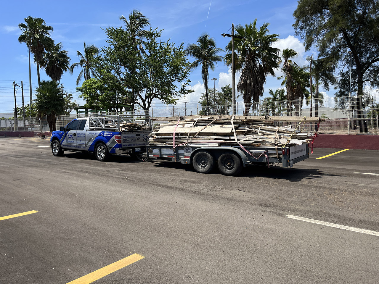 Desmantelamiento de instalaciones eléctricas, voz y datos, lámina tipo multipanel con recuperación, demolición de estructuras de madera, cargadores, anclajes, tornillería.
