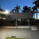 Cambiando totalmente la vista de este domicilio con un elemento moderno, fabricamos e instalamos un techo volado con viga IPR, Durock, estructura de PTR horizontal, fondo, pintado con esmalte acrílico, forro deck de madera e iluminación.